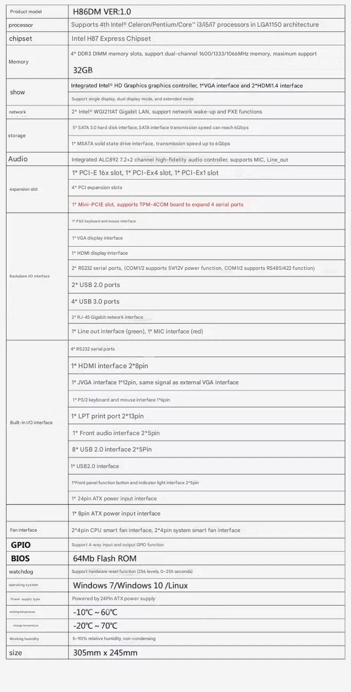 H87 Motherboard ATX SBC 4th Core i3/i5/i7 LGA1150 Desktop CPU IPC Industrial Mainboard with 6*COM 2*LAN DDR3 LPT VGA PS/2 4*PCI