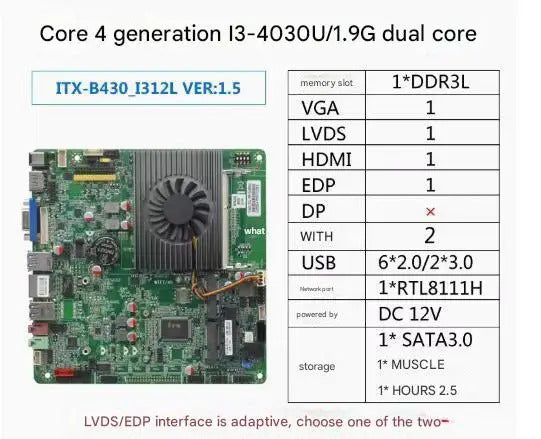 i3-4030u Mini-ITX Motherboard 4th Core Intel CPU IPC SBC Embedded Ultra-thin Mainboard with 2COM LAN DC-12V DDR3L 6USB LVDS EDP