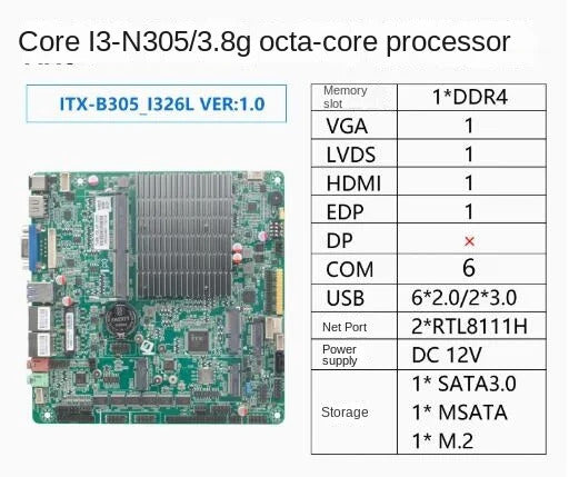 i3-N305 N100 Mini-ITX Motherboard Core Intel CPU IPC SBC Embedded Fanless Ultra-thin Mainboard with COM LPT DC-12V DDR4 EDP