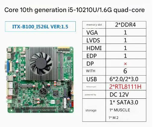 i5-10210u Mini-ITX Motherboard 10th Core Intel CPU IPC SBC Embedded Ultra-thin Mainboard with 6COM 2LAN DC12V DDR4 6USB LVDS EDP