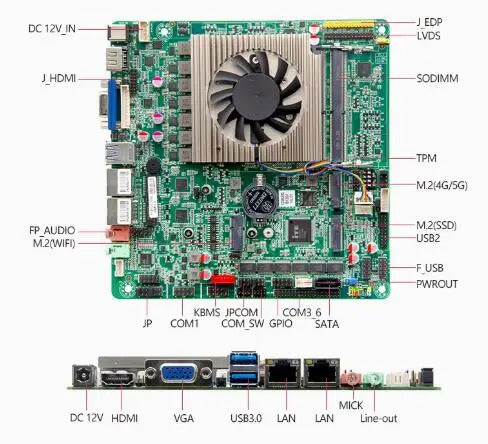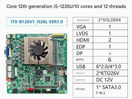 i5-1235U Mini-ITX Motherboard 12th 10Core Intel CPU IPC SBC Embedded Ultra-thin Mainboard with 6COM i226 DC12V DDR4 8USB EDP VGA