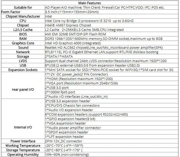 i5-3210M CPU 3.1G New 3.5 inch Industrial mainboard SBC Onboard 2*core 4*Threads Ivy Bridge HM77 For AIO CNC EDM Firewall IPC