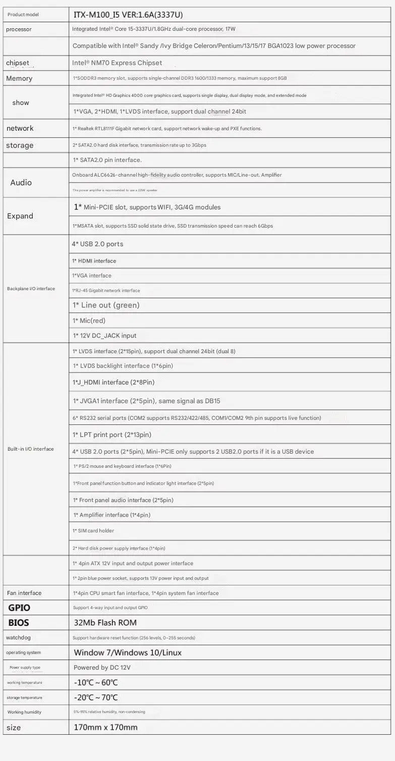 i5-3317u i5-3210M Mini-ITX Motherboard Core CPU IPC SBC Embedded Ultra-thin Mainboard with 6*COM LAN LPT PS/2 DC-12V DDR3 LVDS