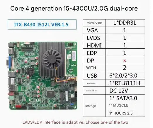 i5-4300u Mini-ITX Motherboard 4th Core Intel CPU IPC SBC Embedded Ultra-thin Mainboard with 2COM LAN DC-12V DDR3L 6USB LVDS EDP