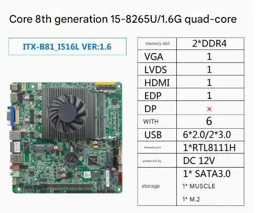 i5-8265u Mini-ITX Motherboard 8th Core Intel CPU IPC SBC Embedded Ultra-thin Mainboard with 6COM LAN DC12V DDR4 6USB LVDS EDP