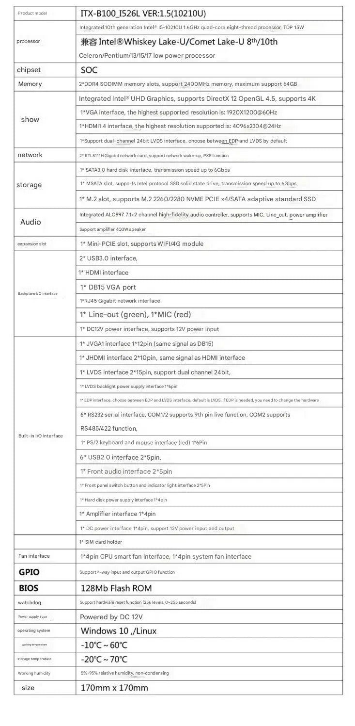 i7-10710u Mini-ITX Motherboard 10th Core Intel CPU IPC SBC Embedded Ultra-thin Mainboard with 6COM LAN DC12V DDR4 6USB LVDS EDP