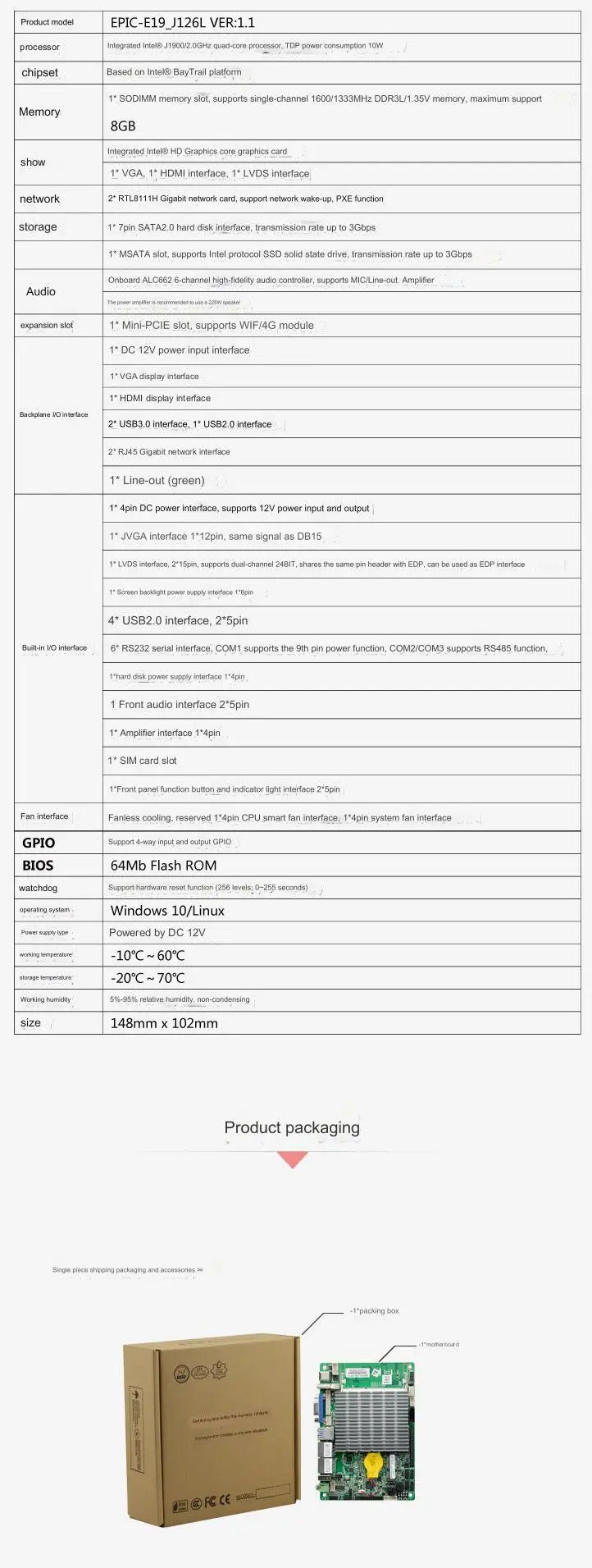 J1900 3.5 inch Motherboard 3.5" SBC IPC Mainboard industrial with Celeron Quad Core DC-12V 6-COM 2xGbE LAN LVDS VGA