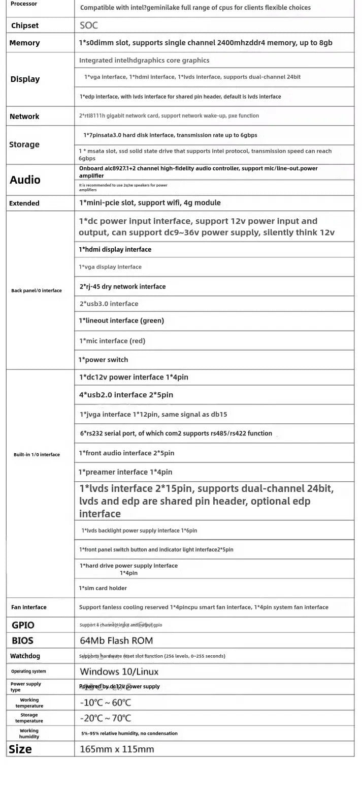 J4125 3.5 inch Motherboard 3.5" SBC IPC Mainboard industrial with Celeron Quad Core DC-12V 6-COM 2xGbE LAN LVDS VGA