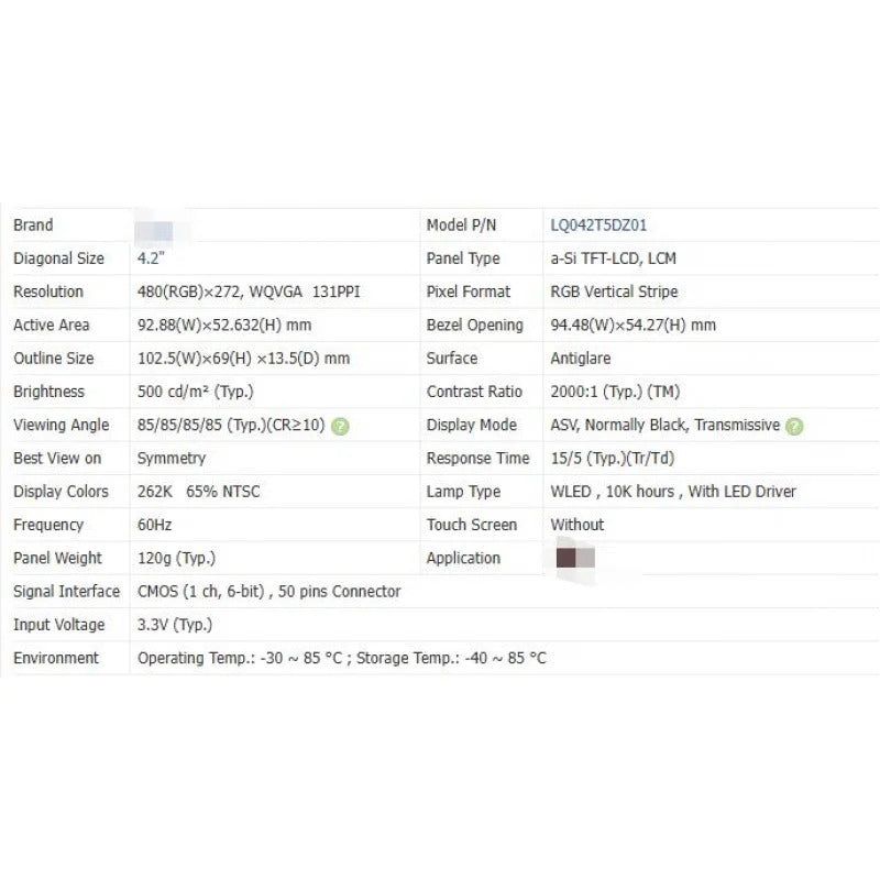 LQ042T5DZ01 Display 4.2 Inch LCD Screen