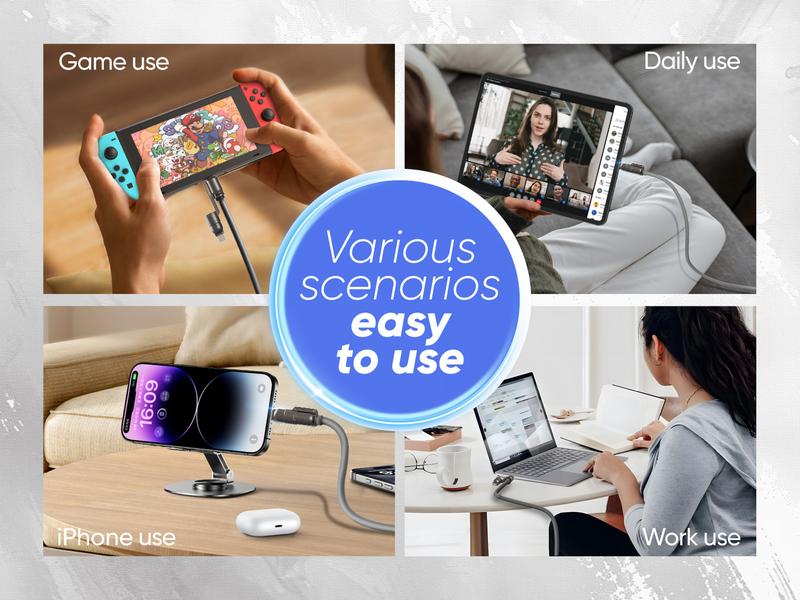4-in-1 built-in cable: Multiple connectors in one cable, no need to switch frequently.