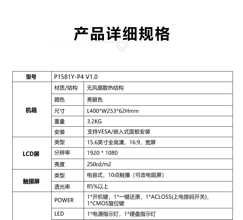 15.6inch Capacitive Industrial Control Touch All-in-One Machine 8/10/11 Generation 5 Network 4 Serial Port Embedded Industrial Panel