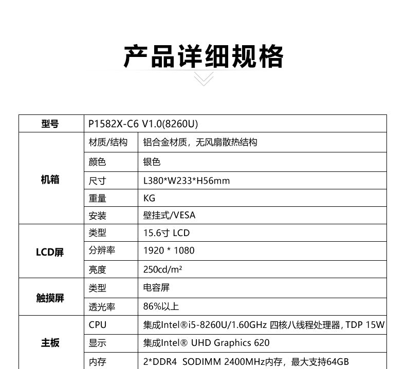 15.6inch Wide Screen Fully Enclosed Industrial Control Touch All-in-One Capacitive Screen Wall-Mounted Industrial Tablet Computer