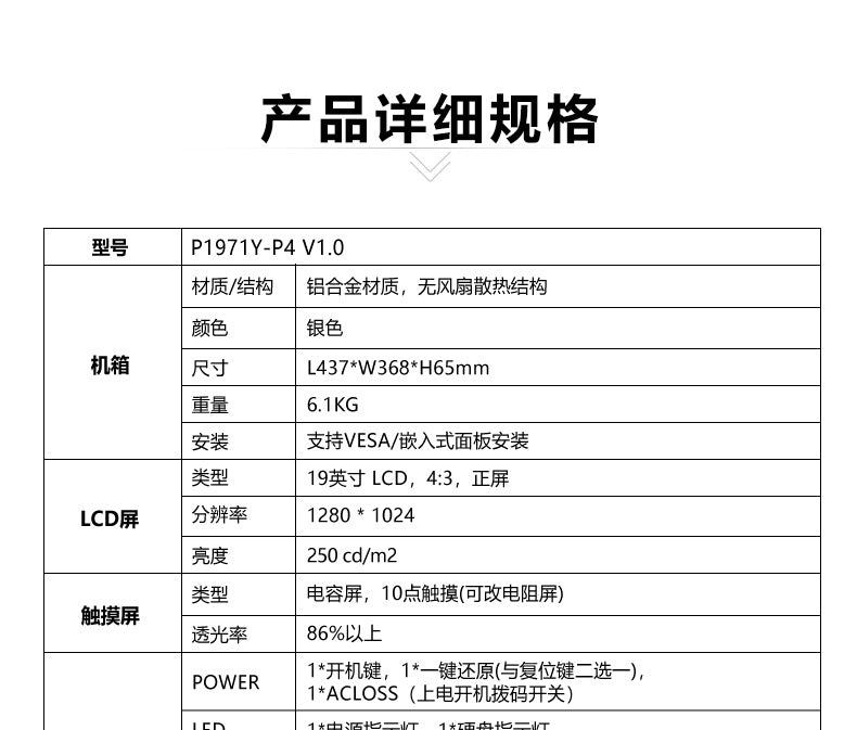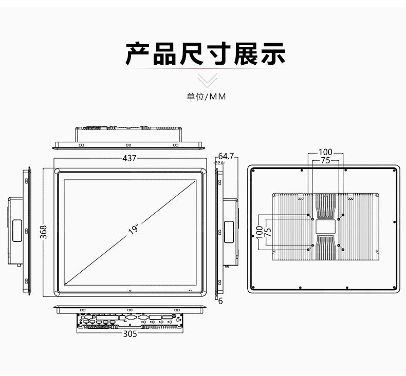 19inch Industrial Computer All-in-One Capacitive Touch Screen 5-Way 4-Serial 7/8/11 Generation Fully Enclosed Industrial Panel