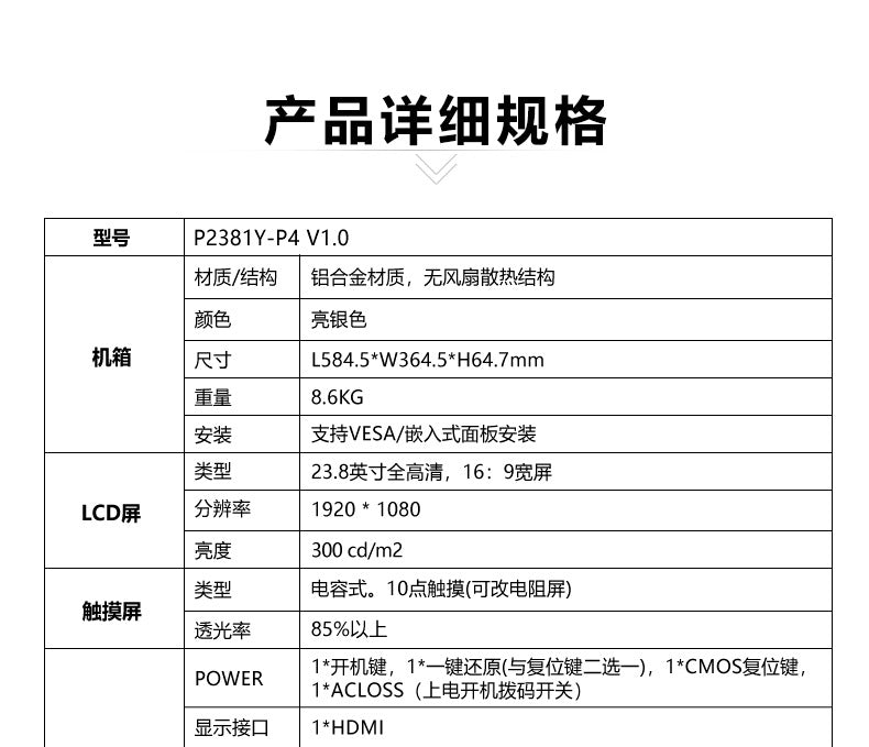 Industrial Control 23.8inch Industrial Computer All-in-One Capacitive Touch Screen 5-Port POE 4-Serial Embedded Industrial Panel
